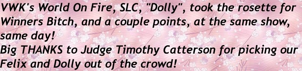 In the pursuit of the very best Dachshund according to the Breed Standard as described by the Dachshund Club Of America.....Von Wolff Kennel will have puppies that are not quite "show quality". These wonderful pups are from the same beautiful parents, cared for in the same loving, concerned way as the ones chosen to stay at VWK and begin careers in the showring. As adults, some of these pups turn out to be as good as the ones we deem "show prospects". Wouldn't you like to own a well-bred, lovely mannered, VWK puppy? Contact us today at 219-801-4807 or by email at vwkdoxies@gmail.com. Thank You for your interest in VWK!