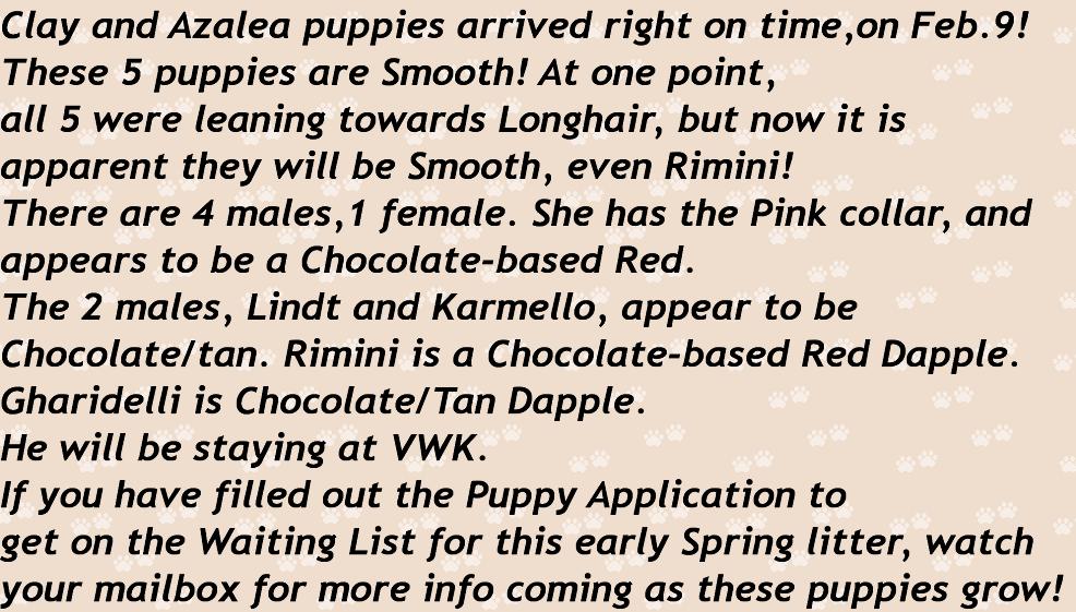 puppy growing, right up until you pick him/her up at VWK.